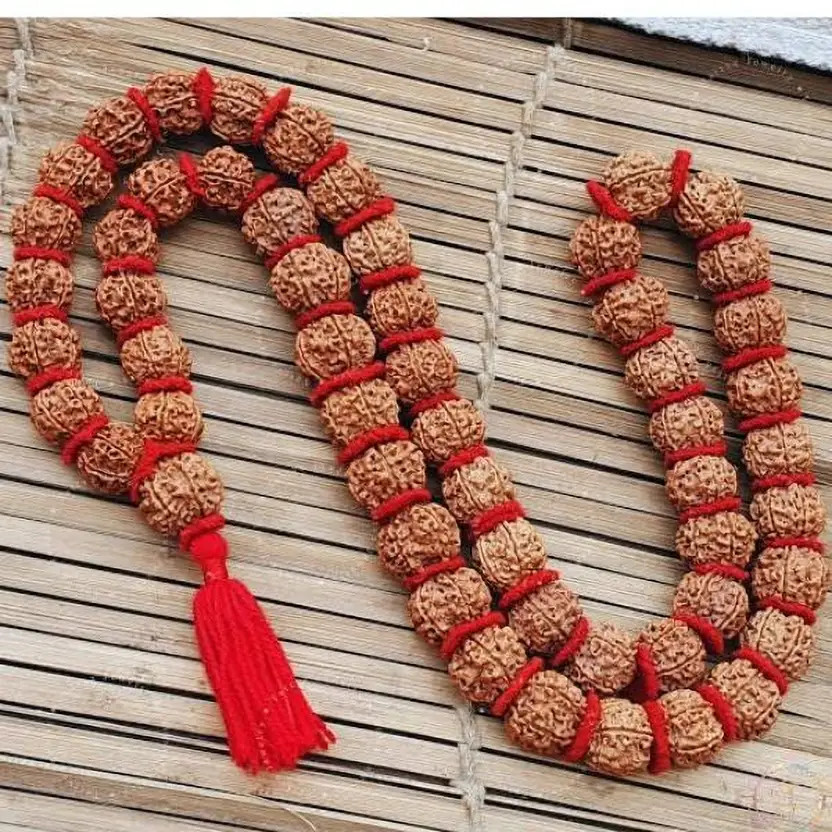 5 Mukhi Rudraksha Kantha Mala – Nepali Seed Beads, 32 Beads, Handcrafted Prayer Mala, Meditation Necklace, Seed Prayer Mala