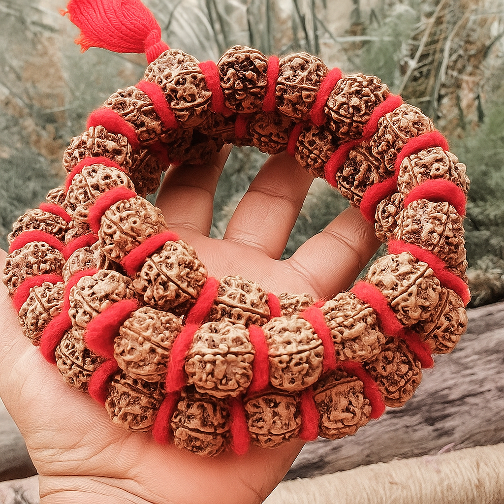 This hand-knotted 5 Mukhi Rudraksha Kantha Mala is crafted using large, natural Nepali Rudraksha beads, traditionally respected in various spiritual paths for their symbolic connection to inner balance and mindfulness. Often used in japa (chanting), meditation, and sacred rituals, this mala is also valued as a meaningful accessory with cultural significance.