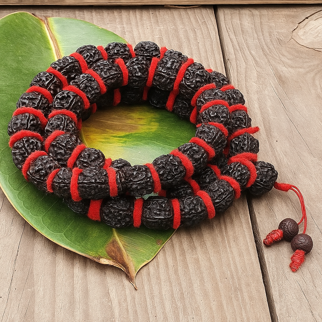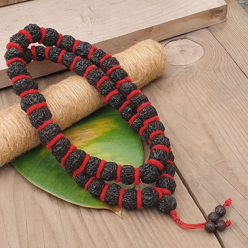 Our Nepali 5 Mukhi Rudraksha Kantha Mala Necklace is a sacred accessory meticulously crafted to enrich your spiritual practice. Available in 32 beads, each Rudraksha bead is a conduit for divine energy, offering a myriad of benefits and properties deeply rooted in spiritual tradition.